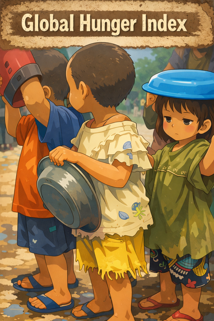India, a $4.3 trillion economy and the world’s fourth-largest and fastest-growing major economy, paradoxically grapples with persistent hunger and poverty. As a leading producer of rice, wheat, milk, and sugarcane—and the second-largest food producer globally by caloric content—the nation ranks 102nd out of 123 countries in the 2025 Global Hunger Index, with hunger levels classified as “serious.” With a population of 1.47 billion, India accounts for one-quarter of the world’s undernourished people, harboring over 190 million who face hunger. This crisis stems not from food scarcity but from interconnected social, economic, and infrastructural failures—including unequal access, flawed distribution systems, and deep-rooted poverty that leaves millions hungry each night despite abundant production. The main reasons contributing to this issue are: